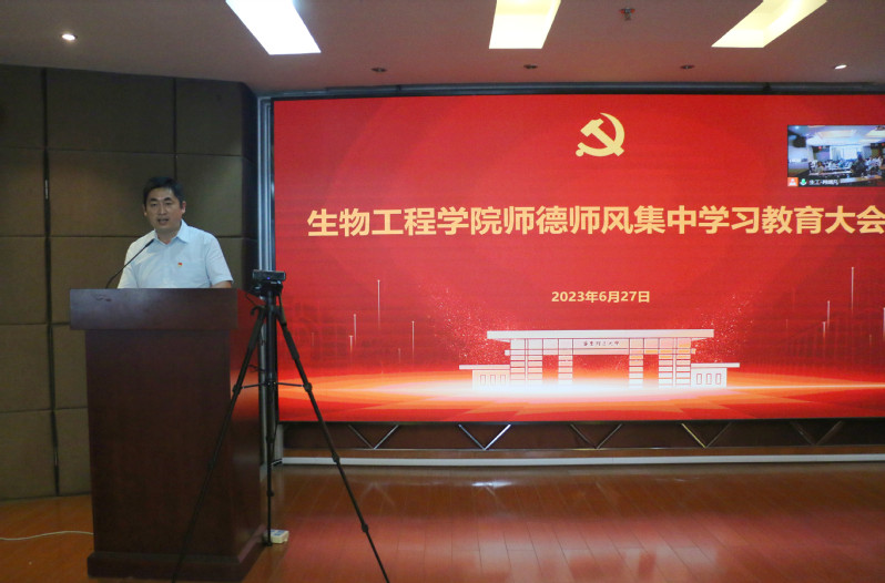 为深入开展学习贯彻习近平新时代中国特色社会主义思想主题教育走深走实,加强新形势下师德师风建设,6月27日,awc777万象城娱乐官网召开师德师风集中学习教育大会,党委书记吴辉作主题报告,院长叶邦策出席会议并讲话,学院全体教师参会,会议由党委副书记左鹏主持。